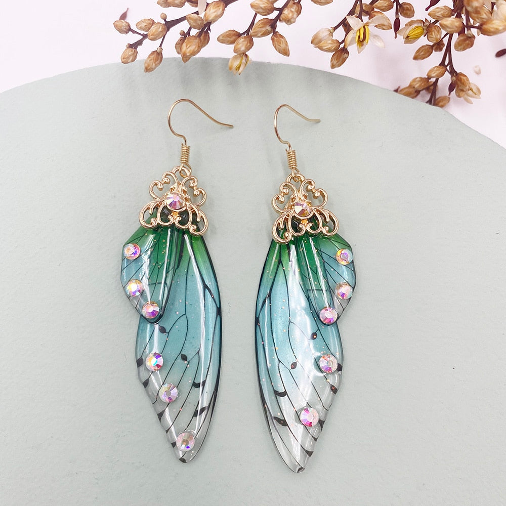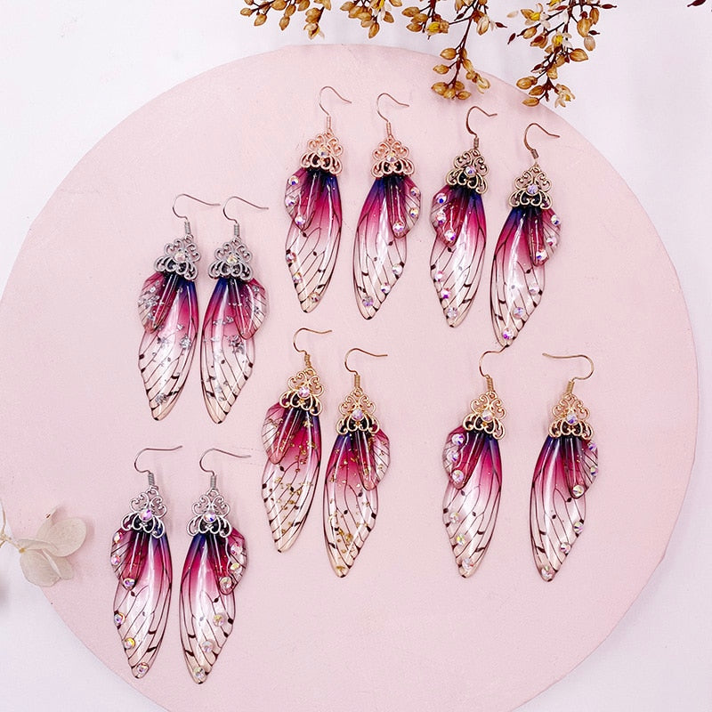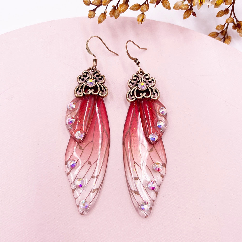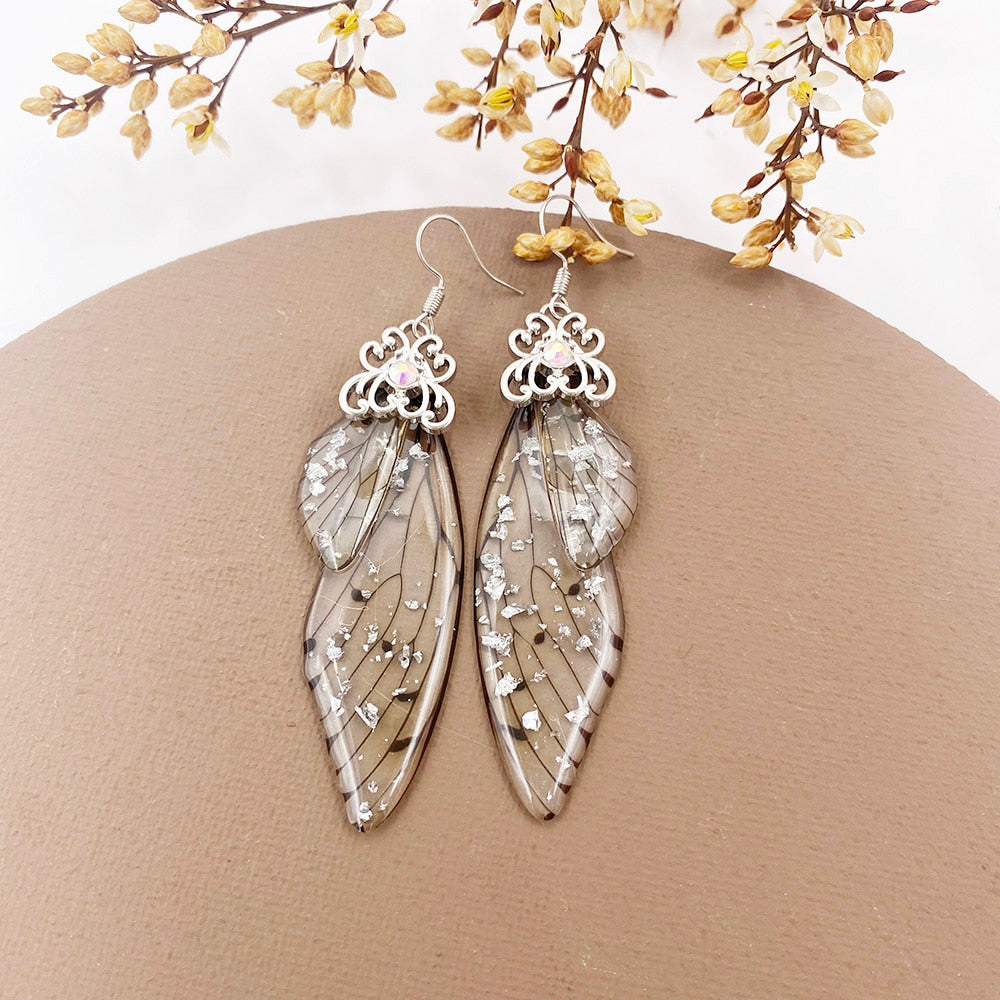 We PROMISE no faeries were harmed in the process of making these earrings. I just kinda, maybe, um, scared them a little, so they'd drop their wings. It's all good though! Really! They just have to sneeze and they grow right back, so I always dust them with pepper after I scare them silly... and then we laugh about it... mostly.