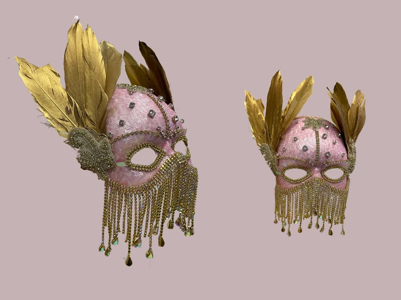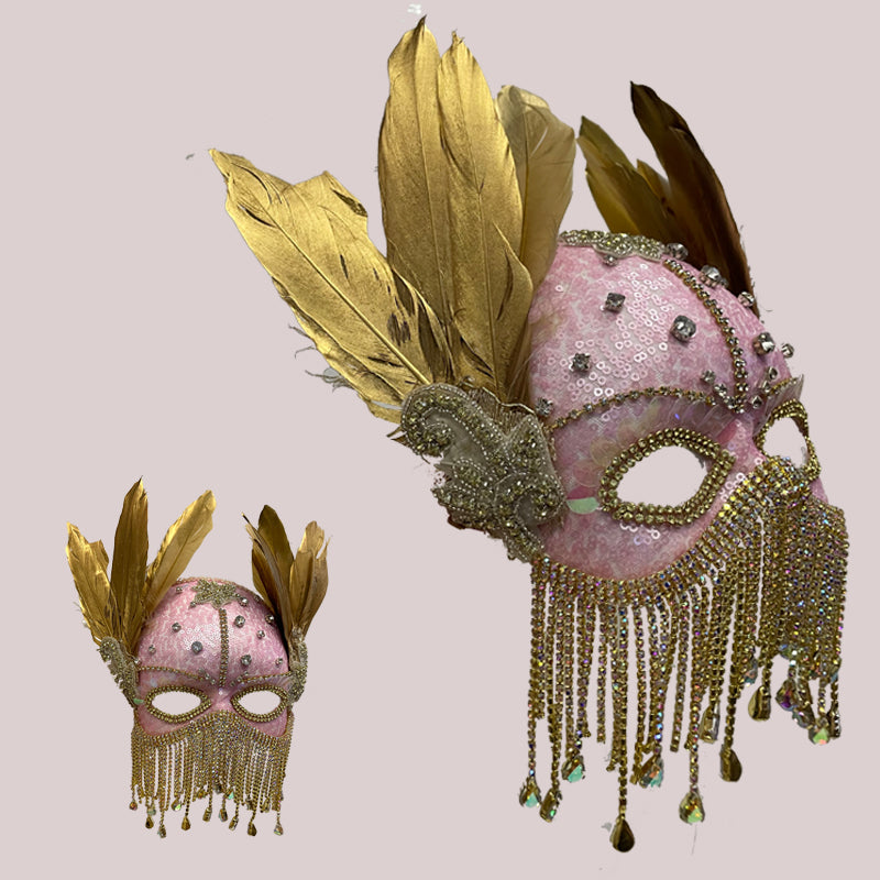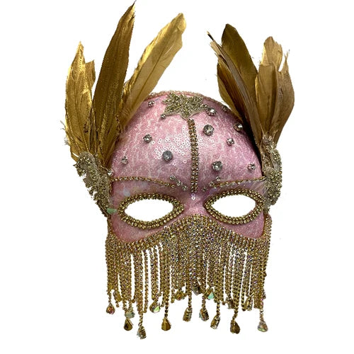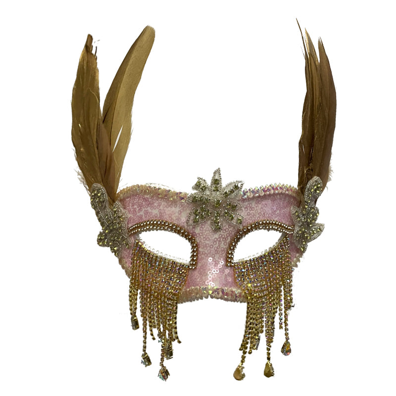 Masquerade Pink Face Mask with Feathers Party Props Fancy Dress