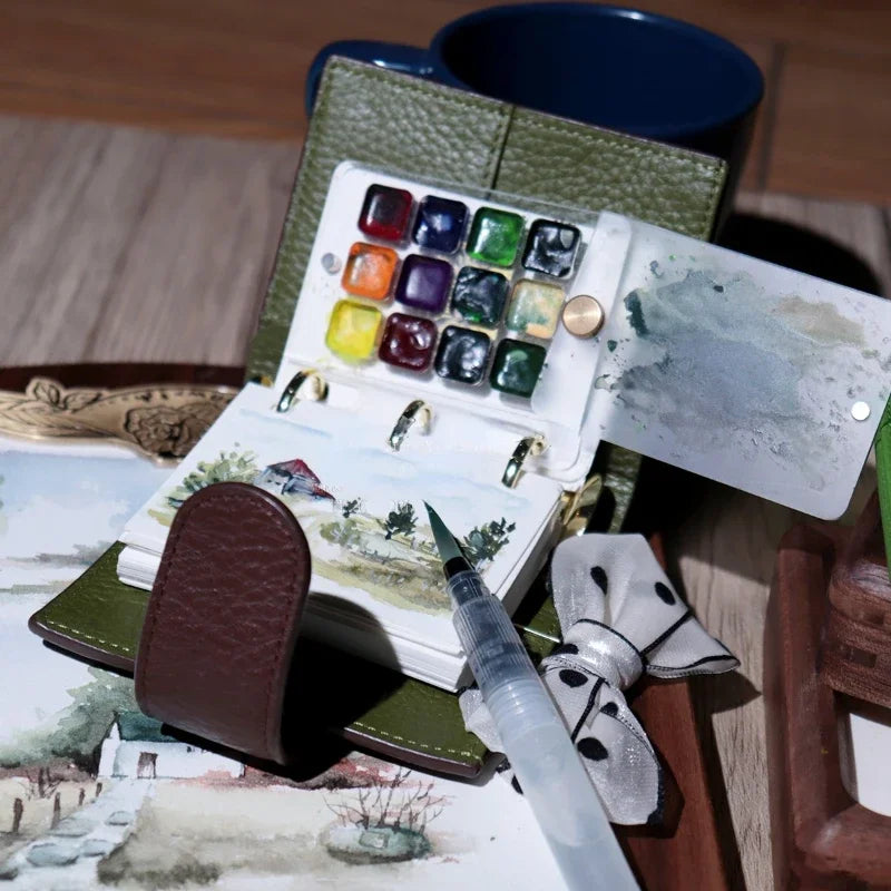 Painters Pocket Kit A9 Three-Ring Mini Loose-Leaf Leather Notepad Painting Supplies