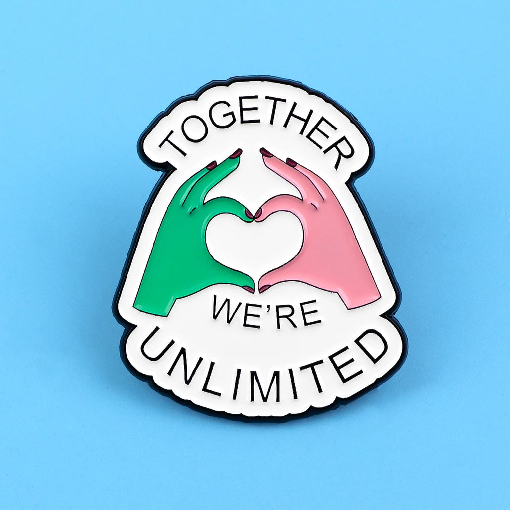 Wicked 'Together We're Unlimited' Enamel Pins Pink & Green Heart Brooches Badge Lapel Pin