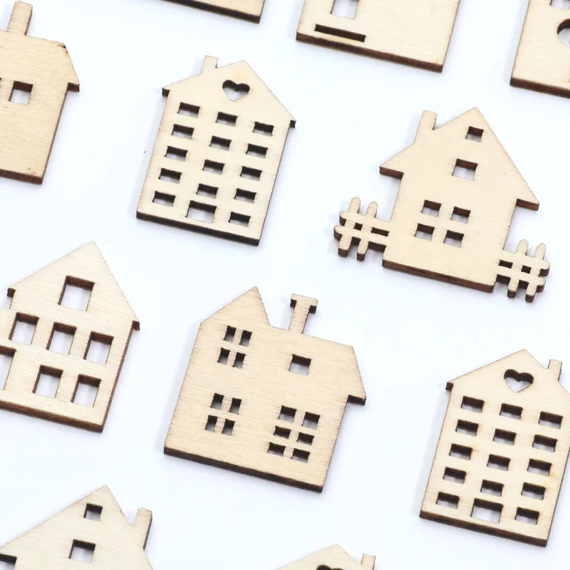 20pcs Mixed Wooden House Scrapbooking Embellishments DIY Craft Supplies