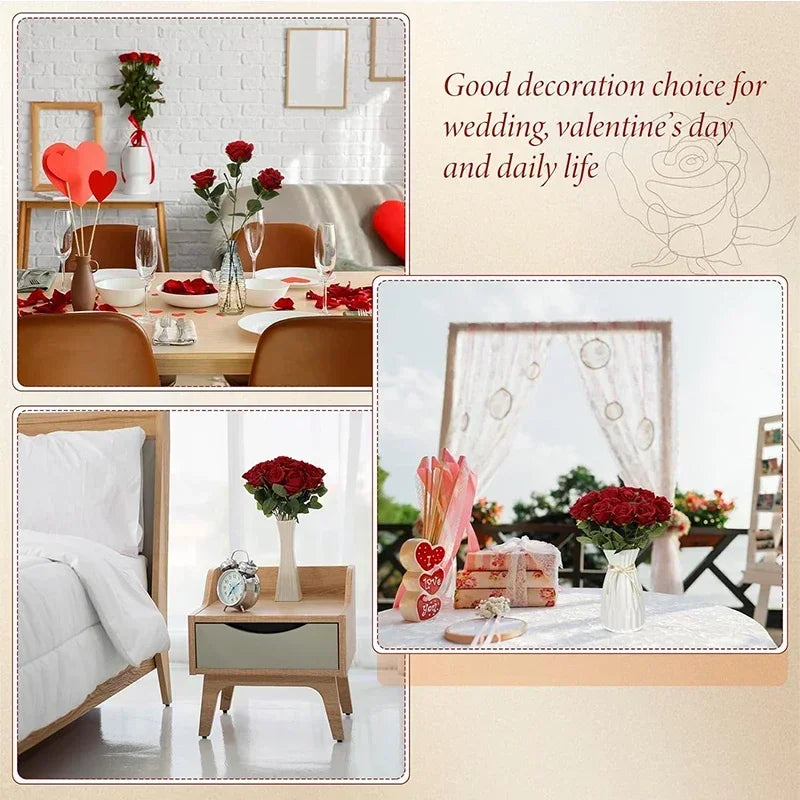 Includes 50pcs small artificial velet roses, very suitable for vase flower arrangement decoration.
