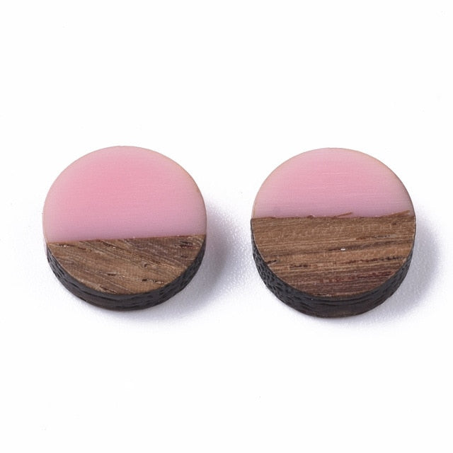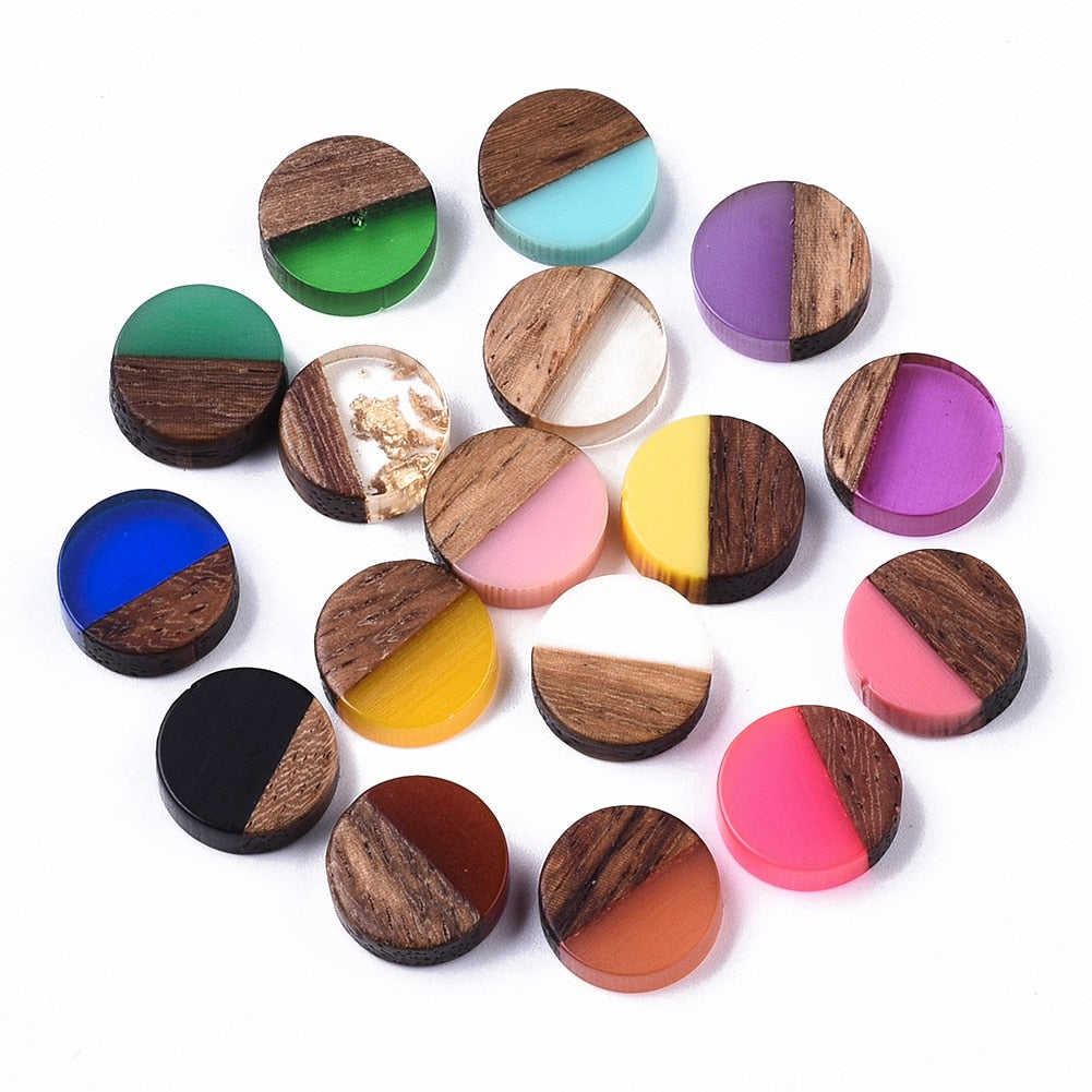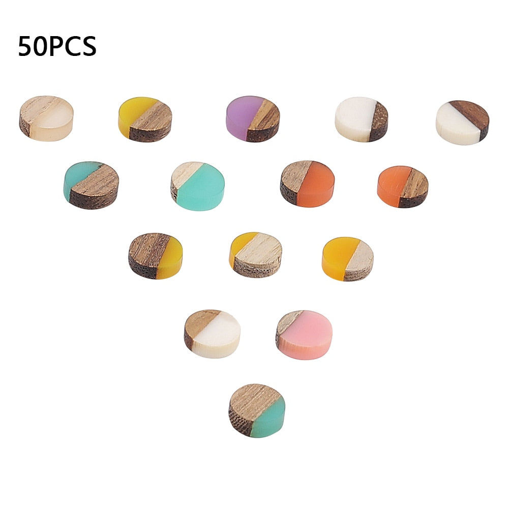50Pcs Natural Wood Resin Cabochons Charm For Bracelet Earring DIY Jewellery Making