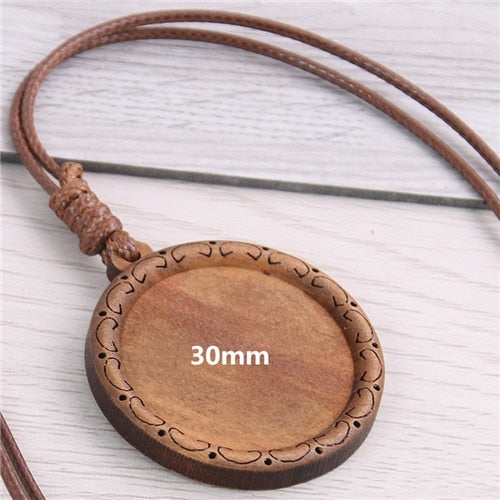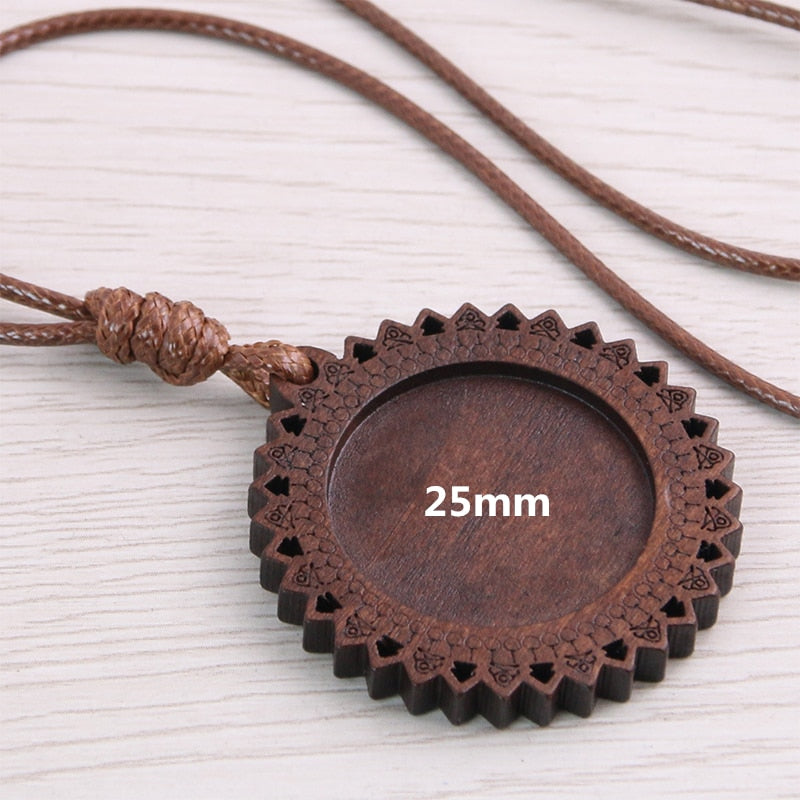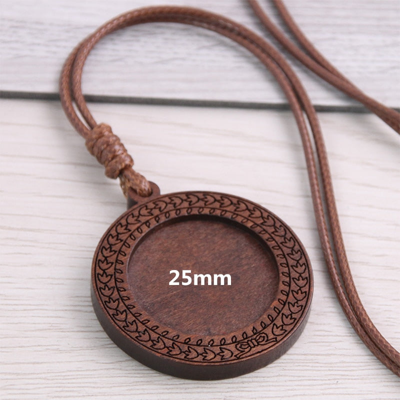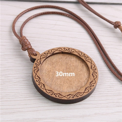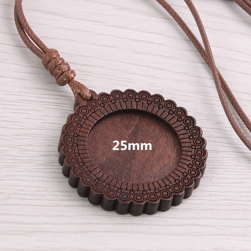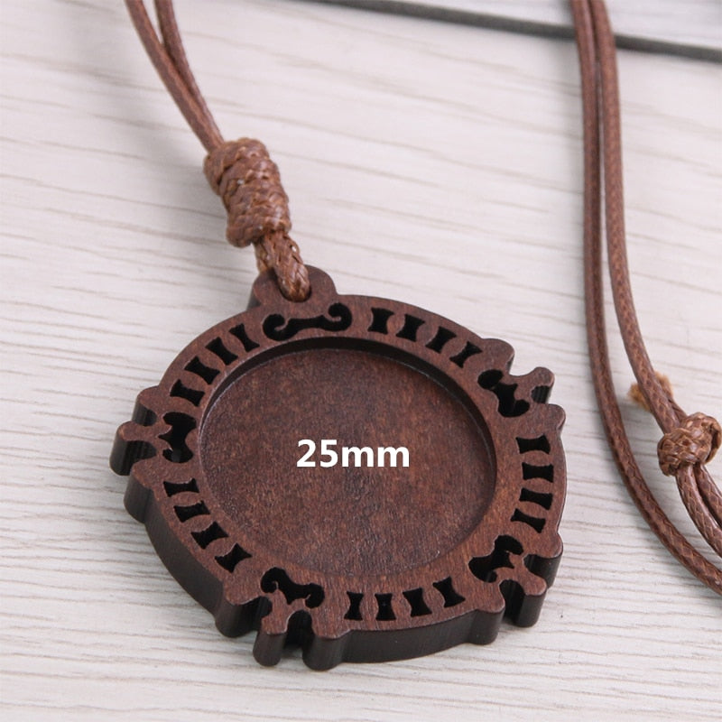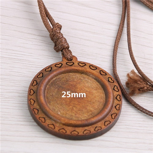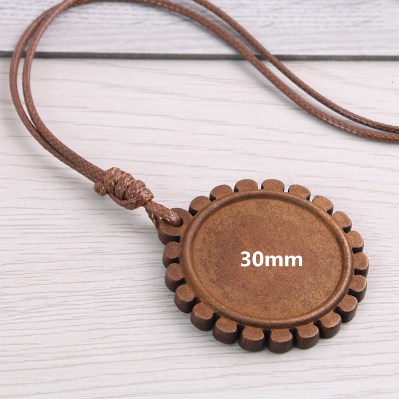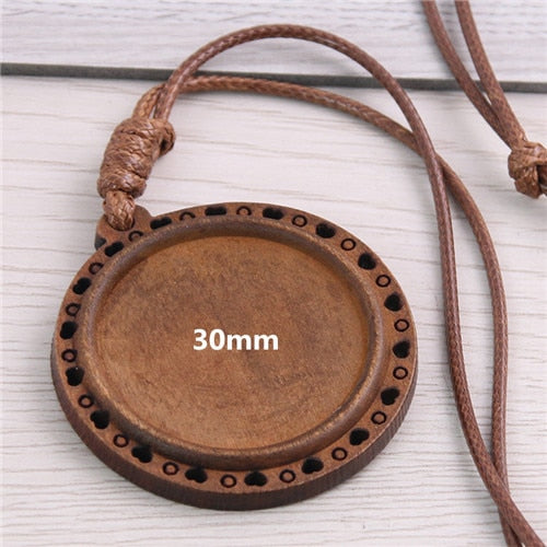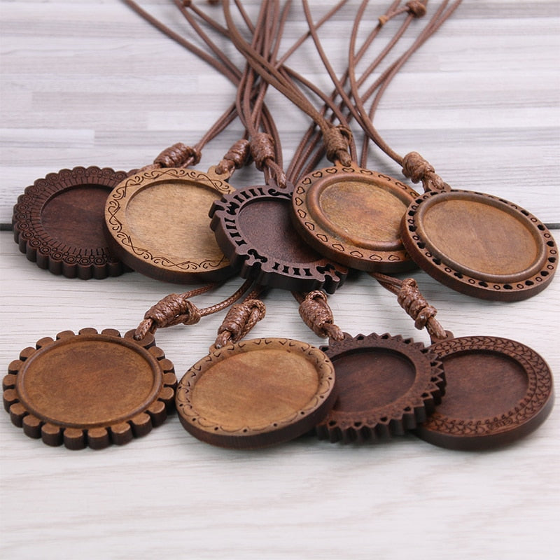 5pcs Wooden Blank Cameo Pendant Base Trays with Leather Cord for Jewellery Making