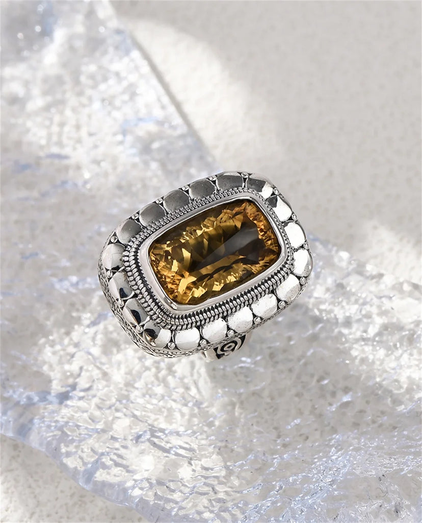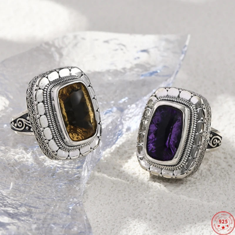 Circe's S925 Sterling Silver Rings Natural Amethyst Yellow Crystal