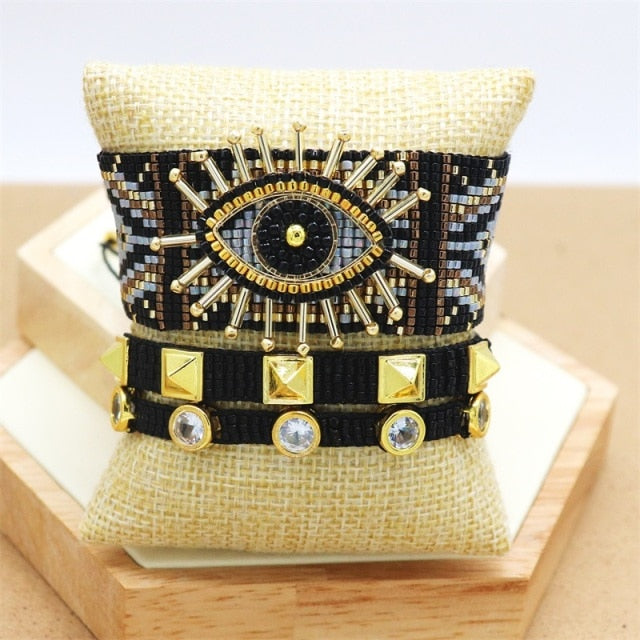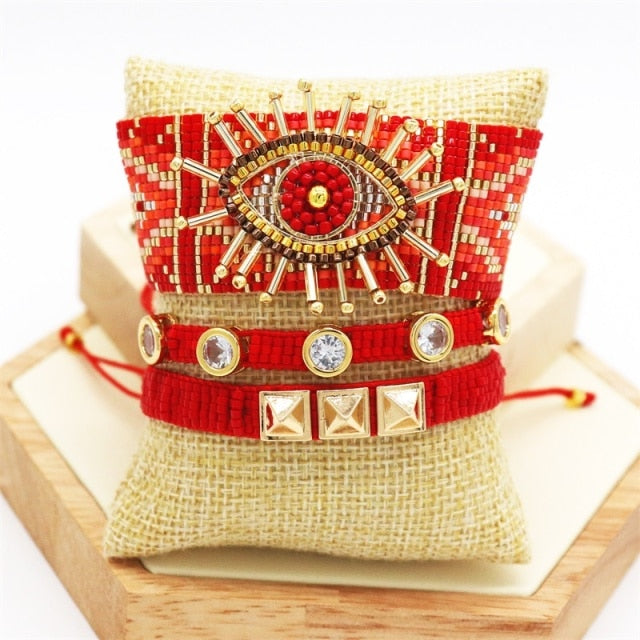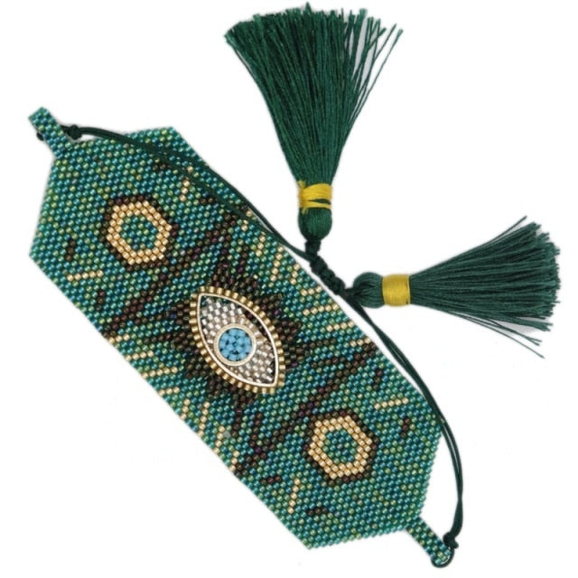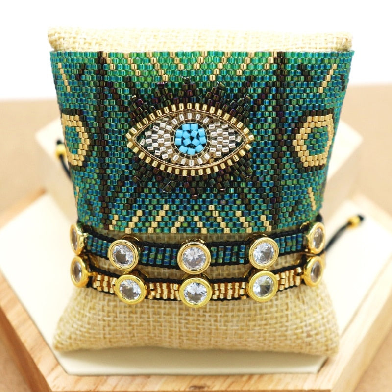 Evil Eye Protection Glass Seed Beaded Bracelets