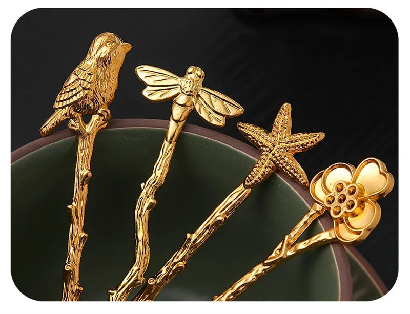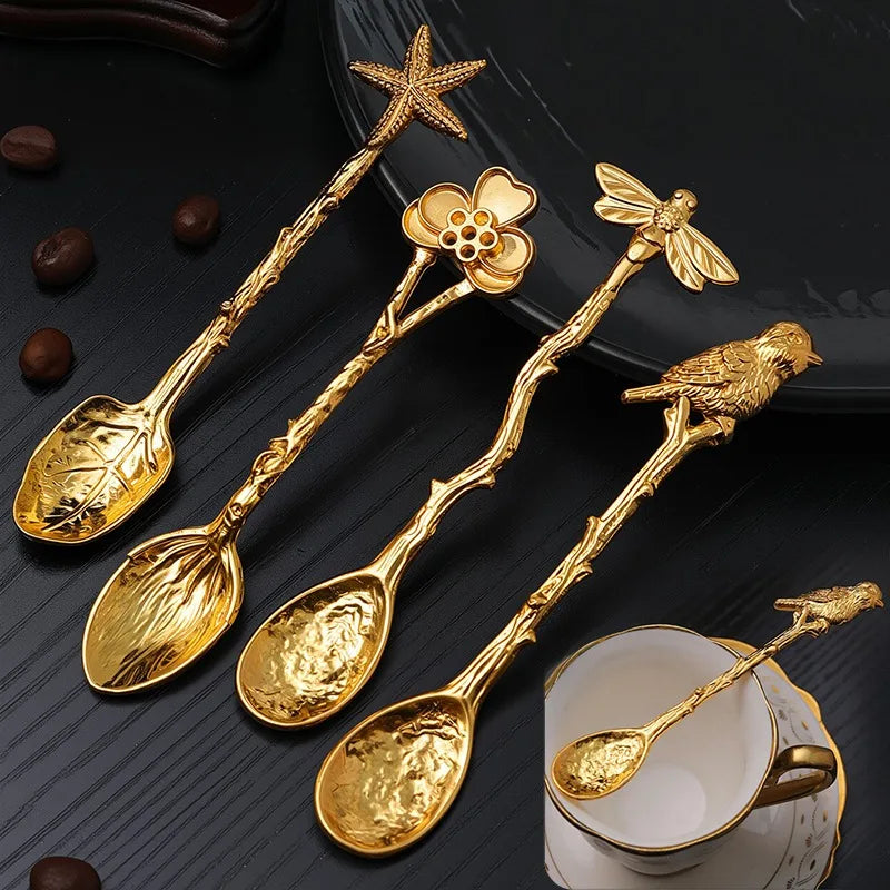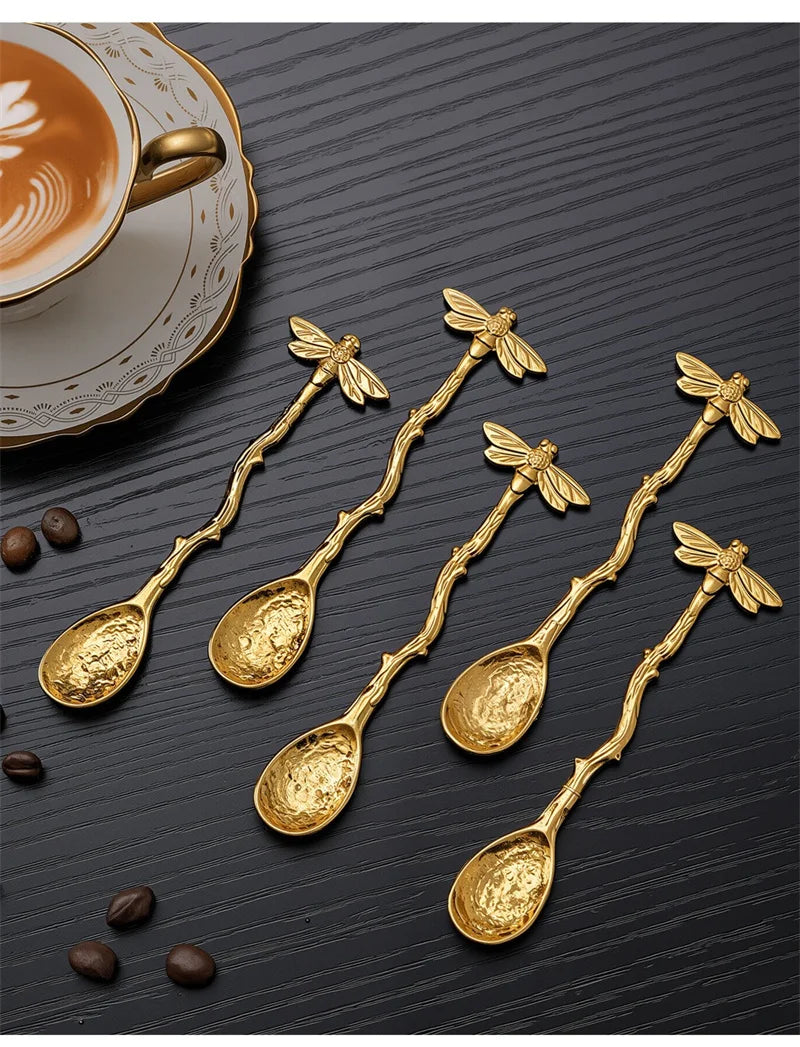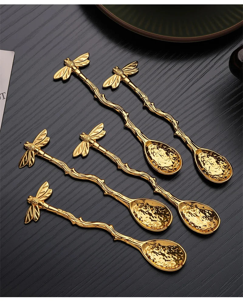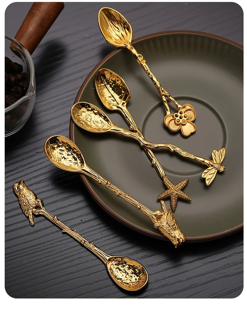 Golden Dragonfly Flower Bird Starfish 11CM Mini Spoon Teaspoon