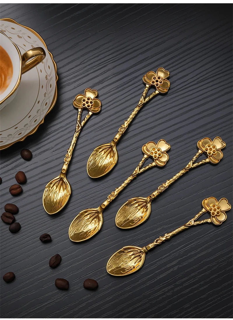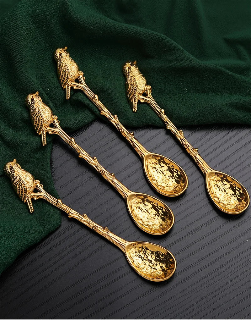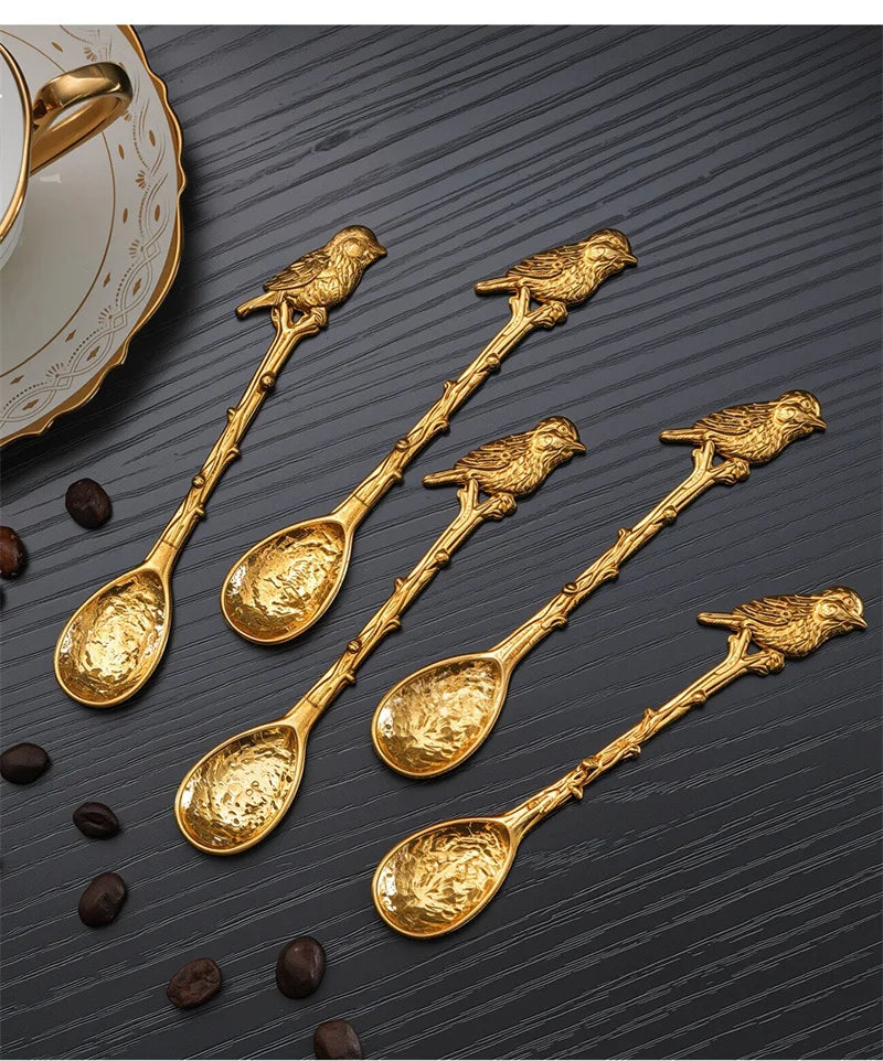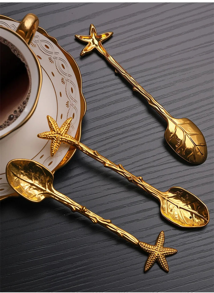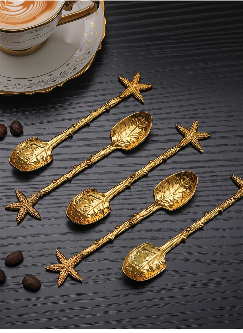 Golden Dragonfly Flower Bird Starfish 11CM Mini Spoon Teaspoon