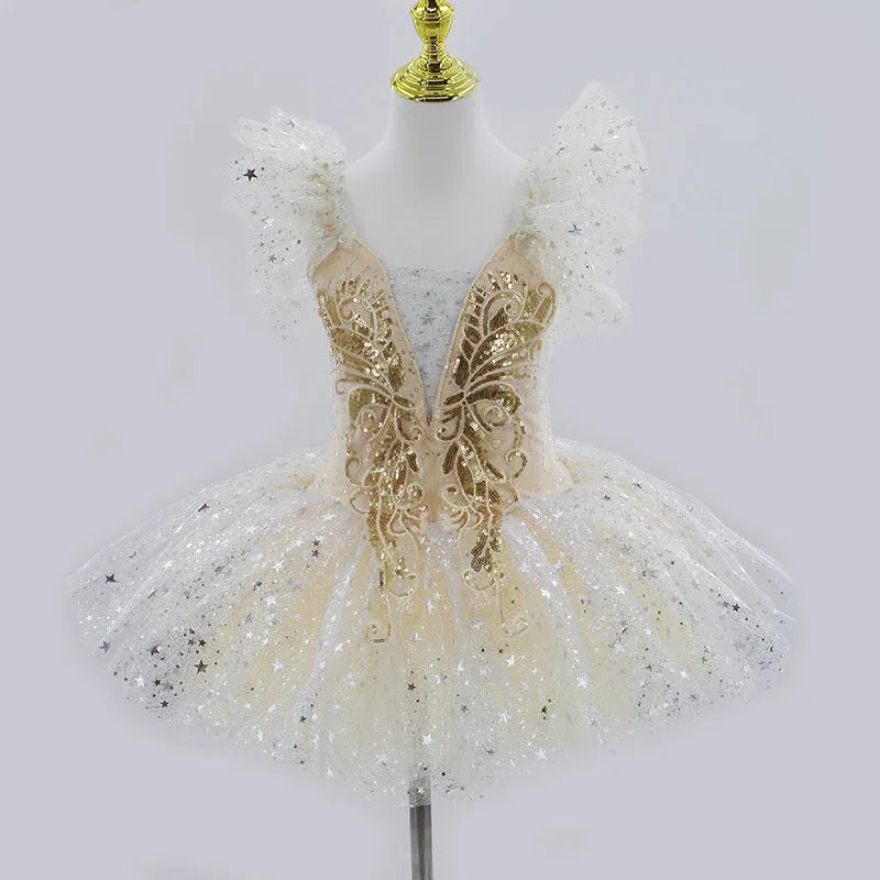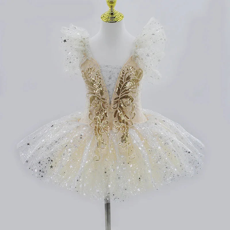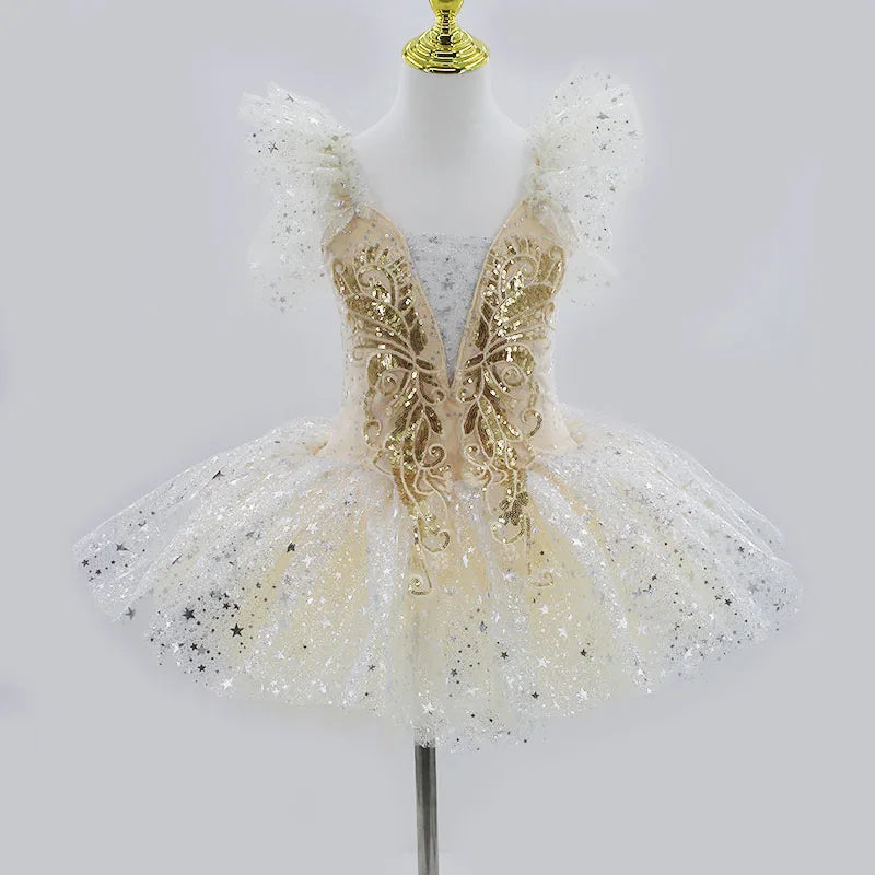 Golden Fae Professional Ballet Dress Contemporary Dance Performance Costumes