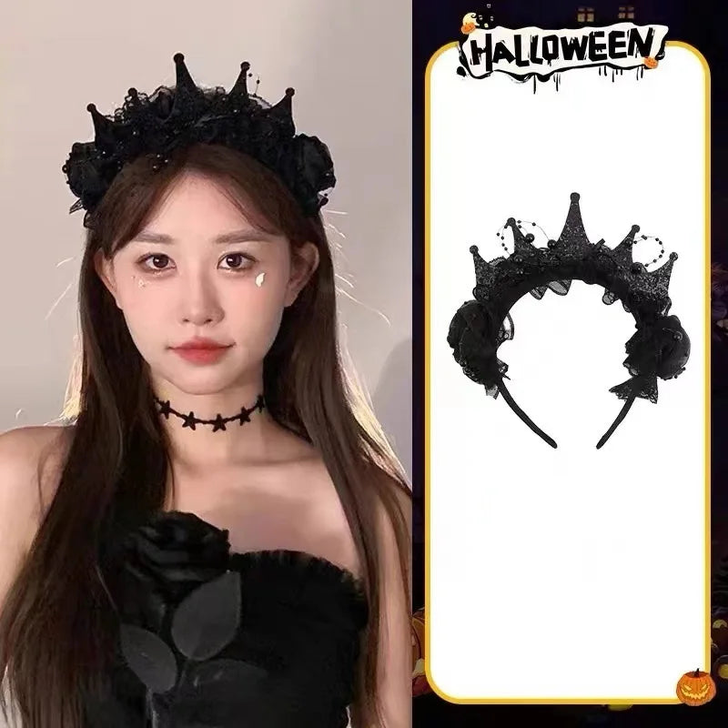 Gothic Black Rose Lace Crown Victorian Photo Shoot Costume Cosplay