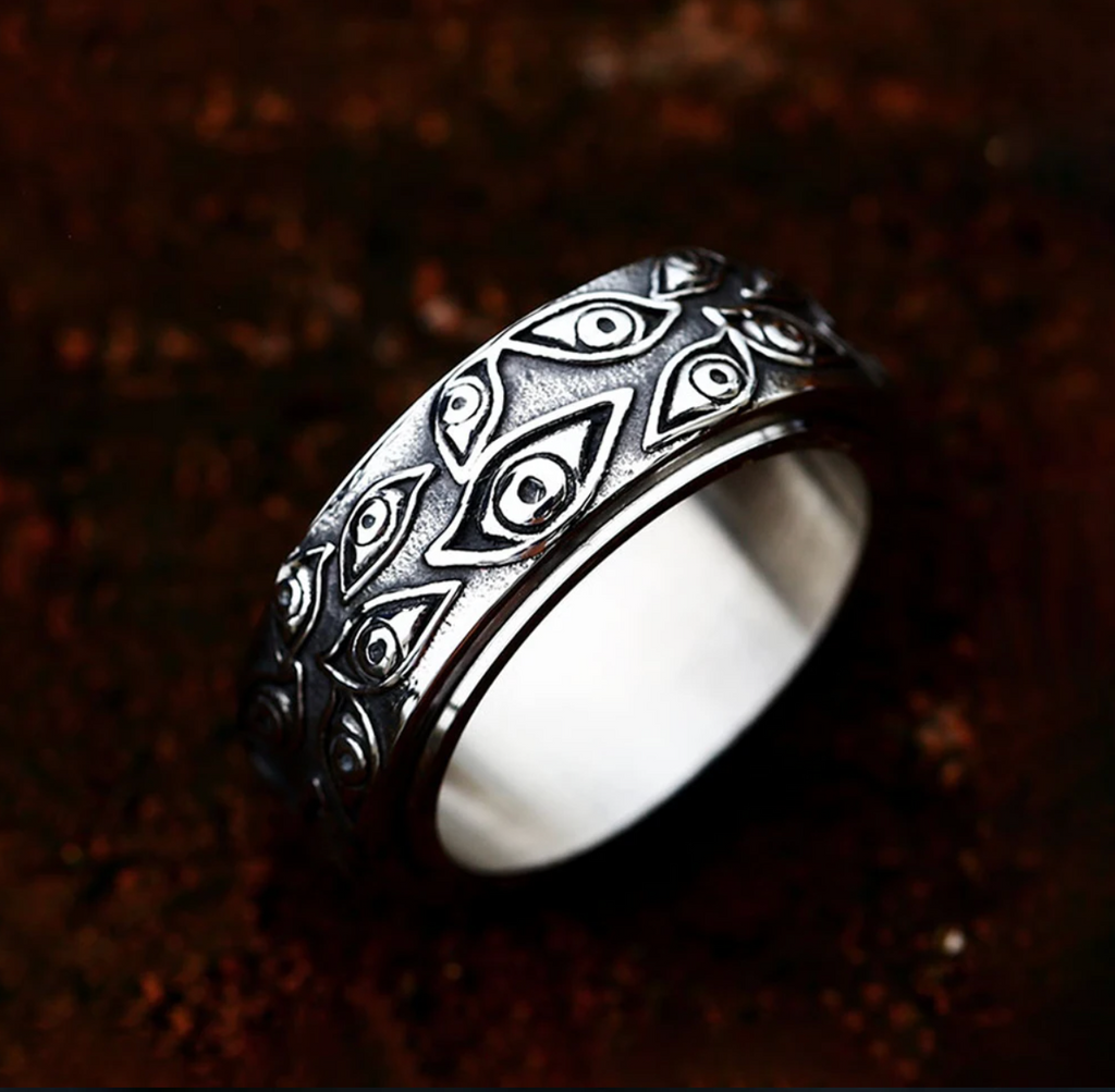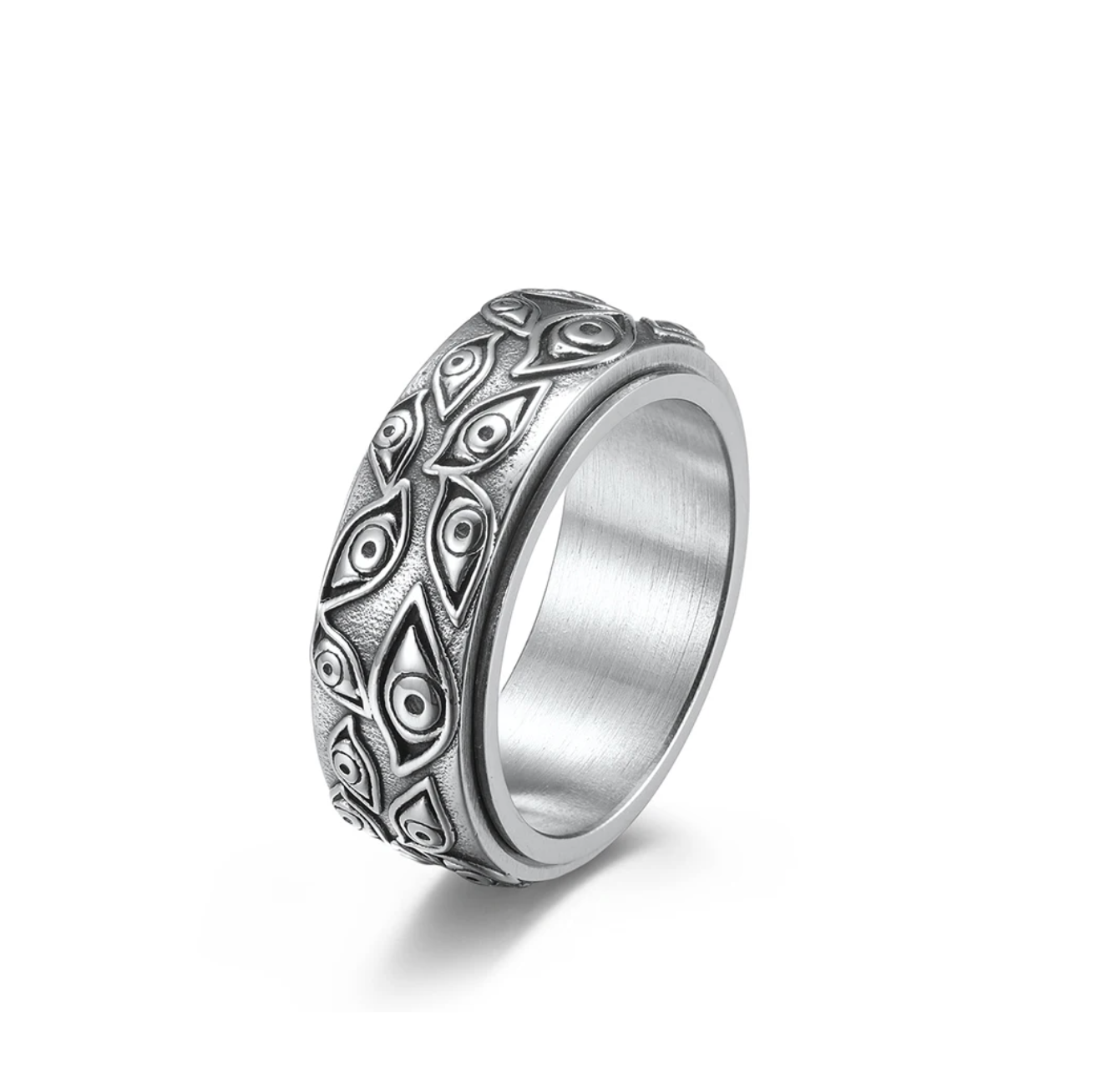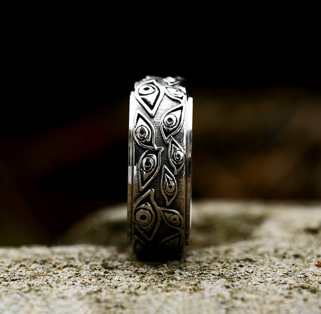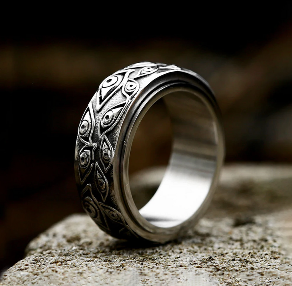 Japanese Mythology Carved Eyes Stainless Steel Rotatable Ring Anxiety Fidget Turning Ring