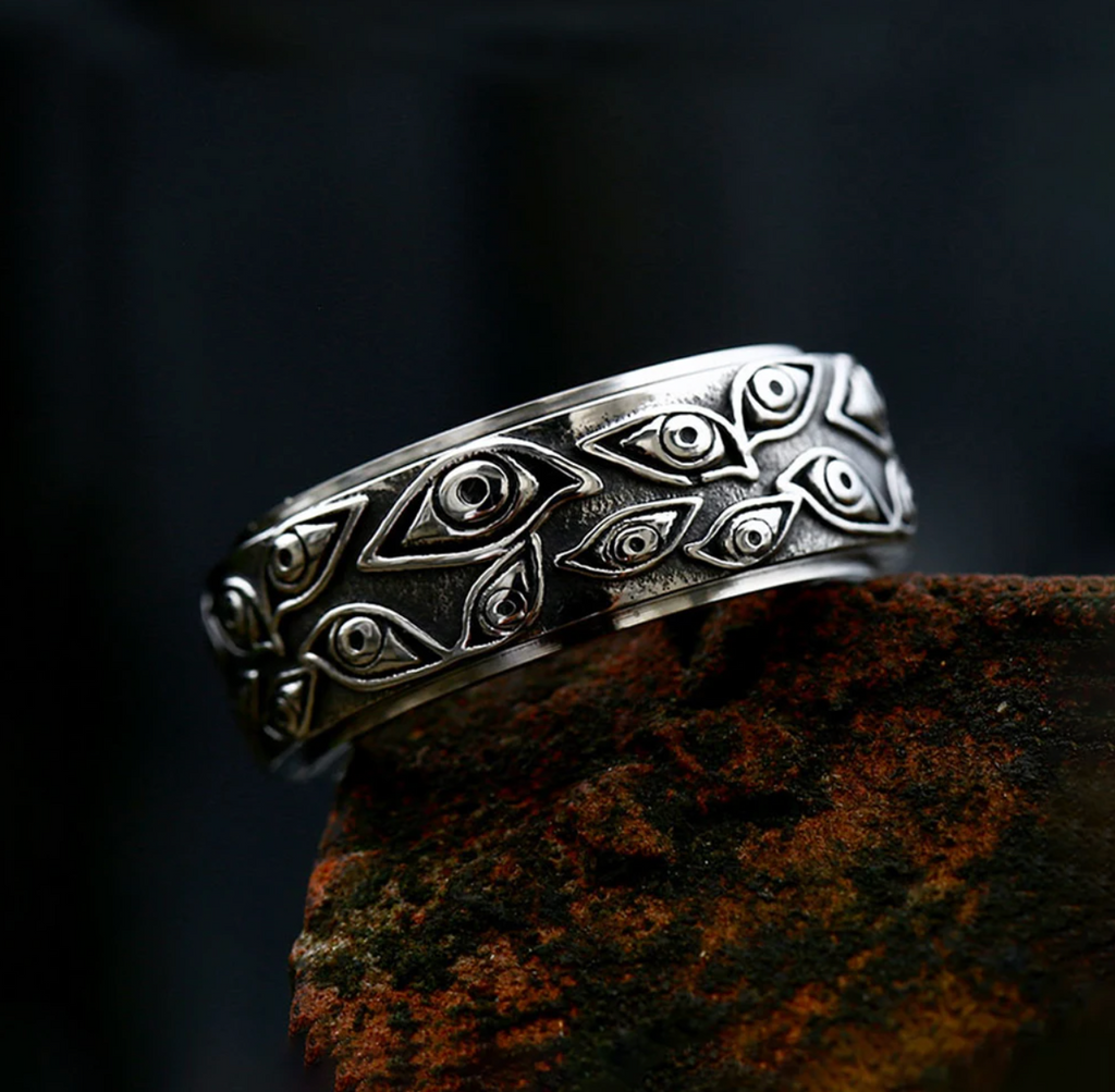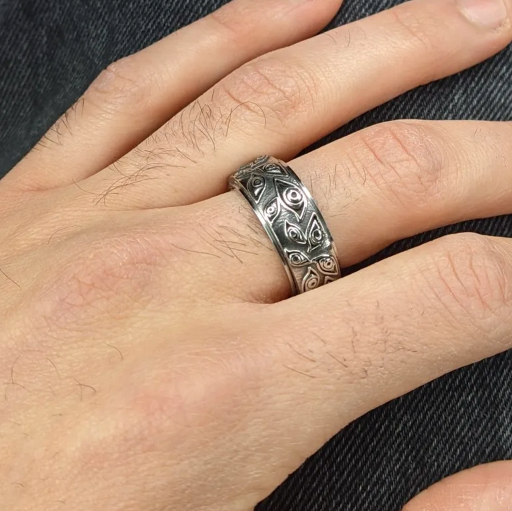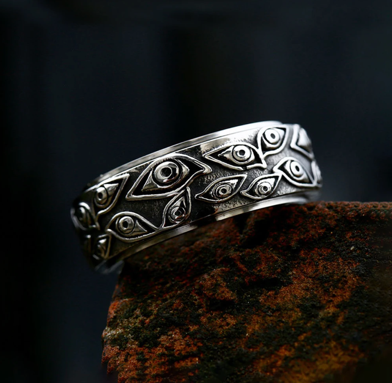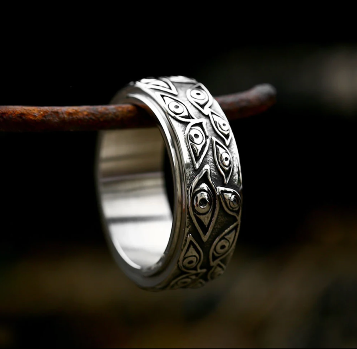 Japanese Mythology Carved Eyes Stainless Steel Rotatable Ring Anxiety Fidget Turning Ring