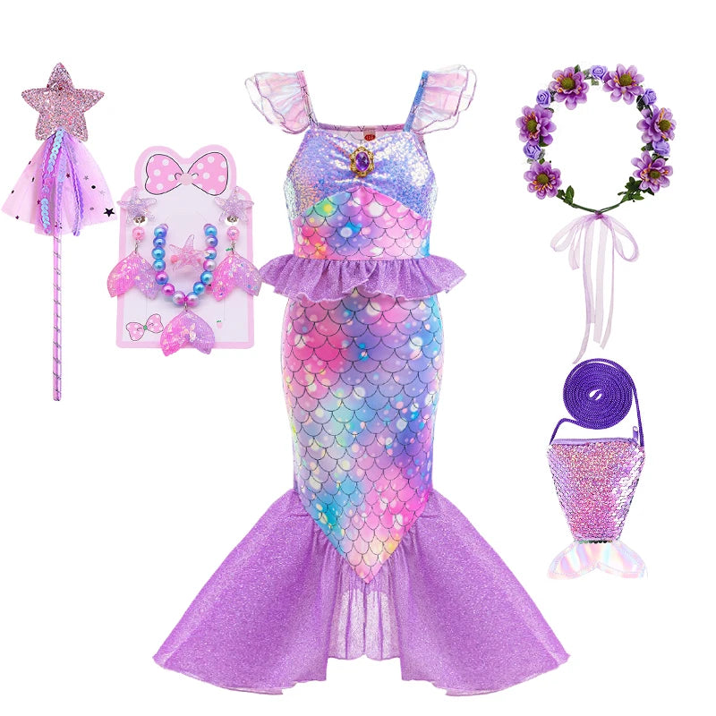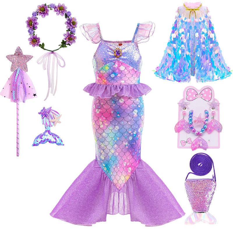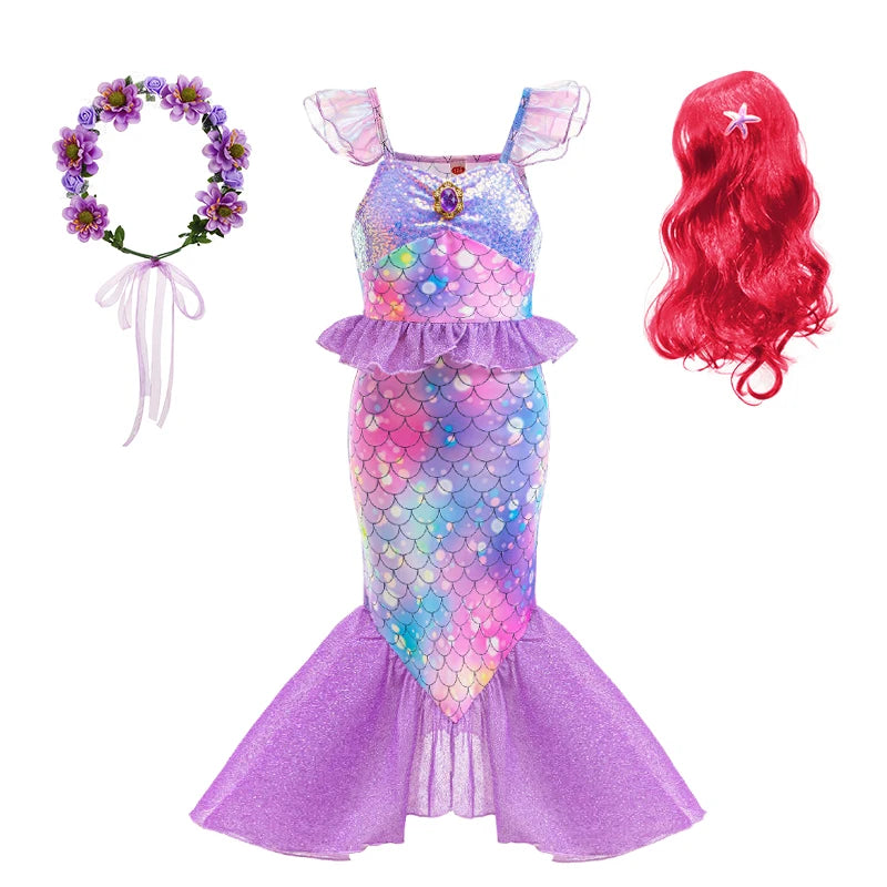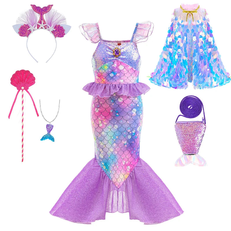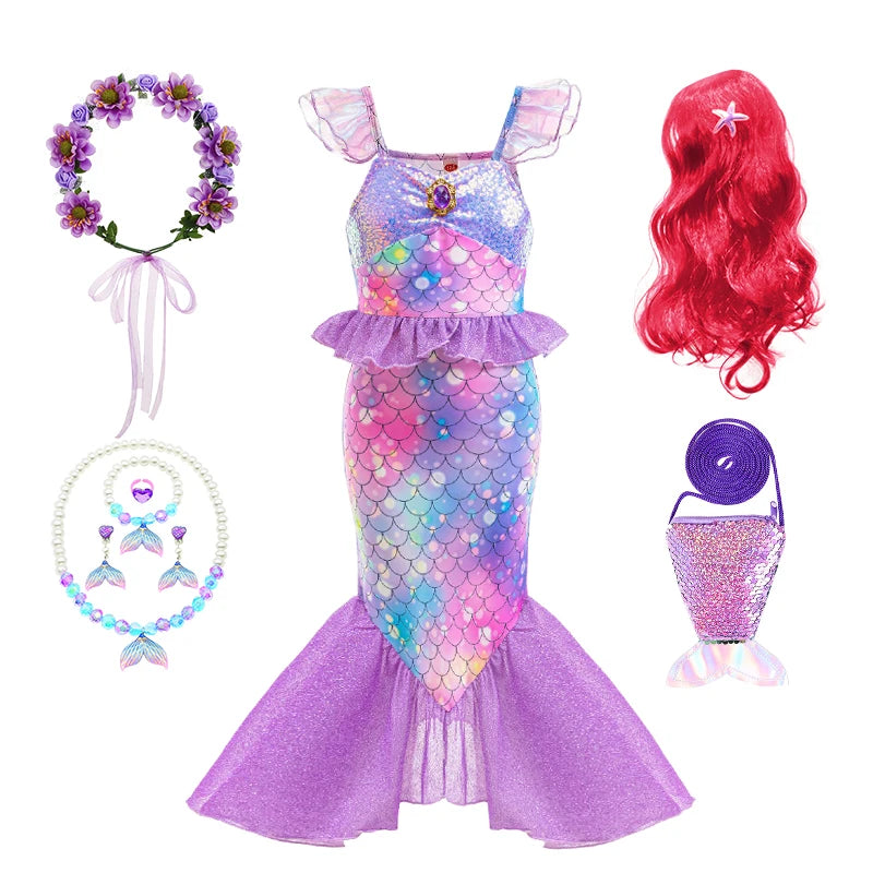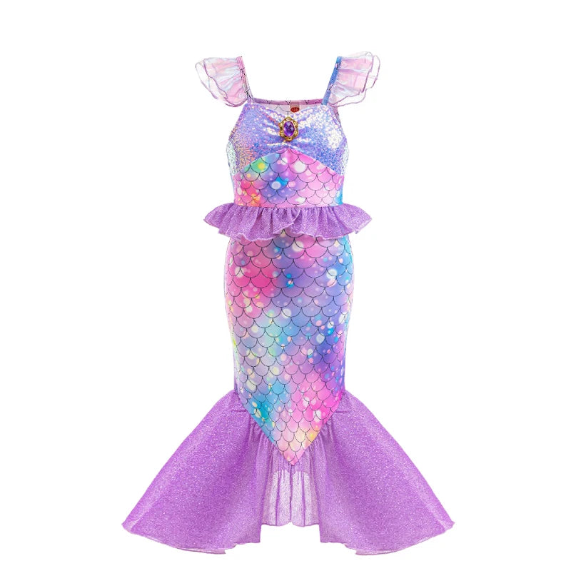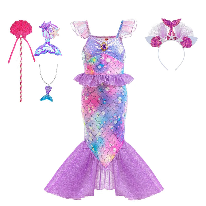 Little Girl Mermaid Ariel Princess Dress Halloween Cosplay Children's Birthday Party Costume