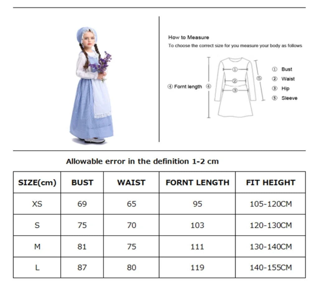 Little House Prairie Pioneer Girl Costume Olden Day Dress Purim Halloween Cosplay