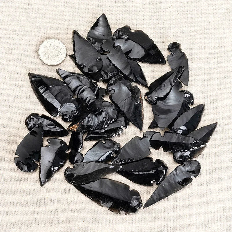 3PCS Natural Obsidian Crystal Black Spear Head Healing Energy Stone DIY Jewellery Making Home Decor