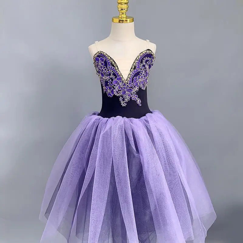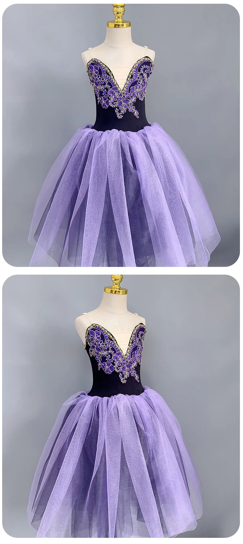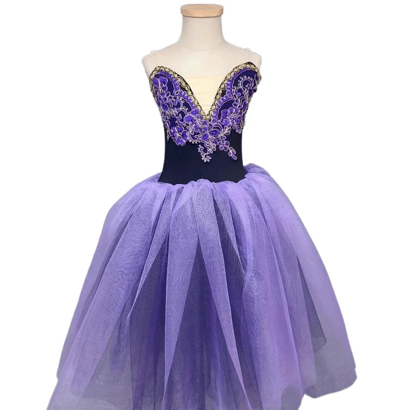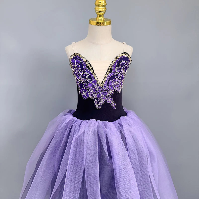 Perfect Purple Velvet Top Ballet Tutu Dress Professional Dance Performance Long Dress