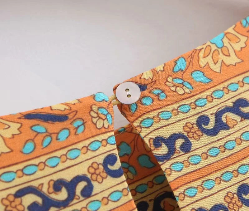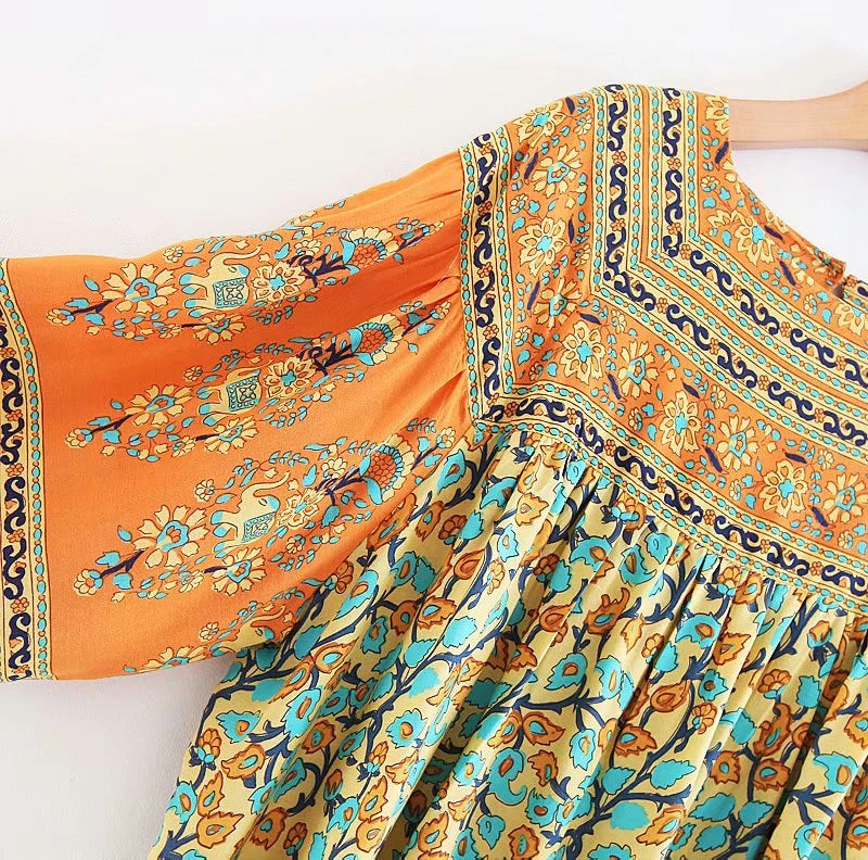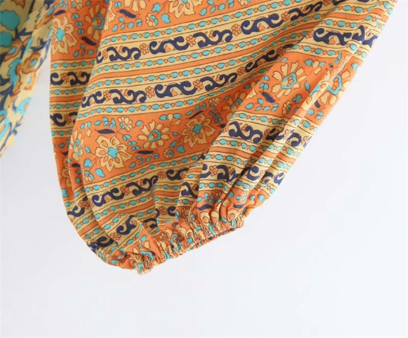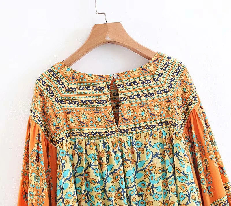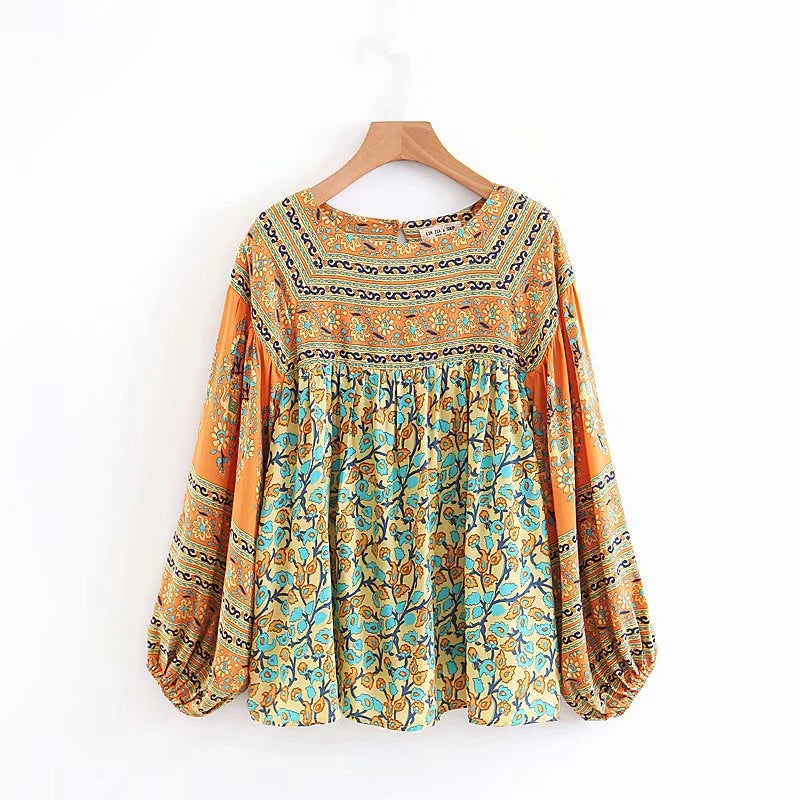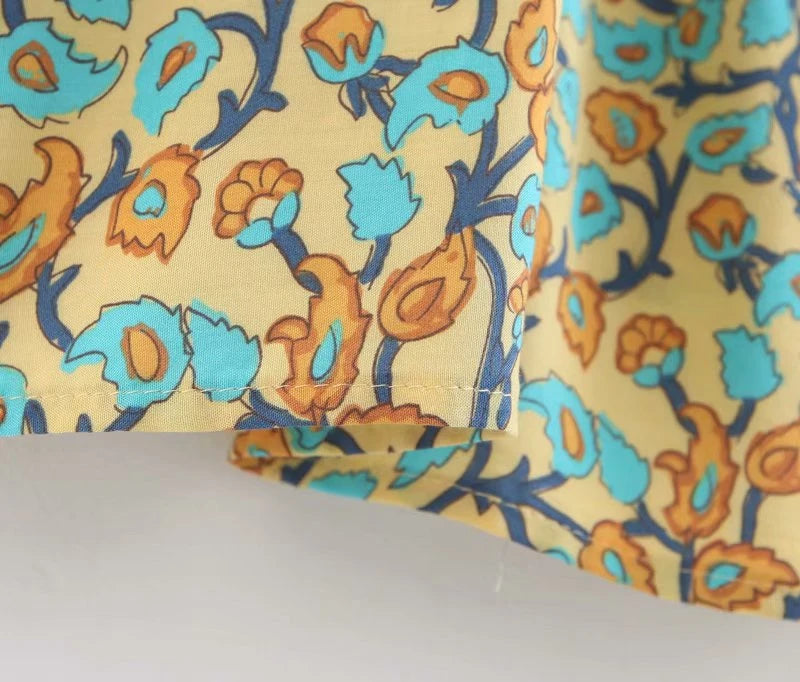 Sayra's Boho Sunshine Yellow Floral Print Long Sleeve Blouse Shirt