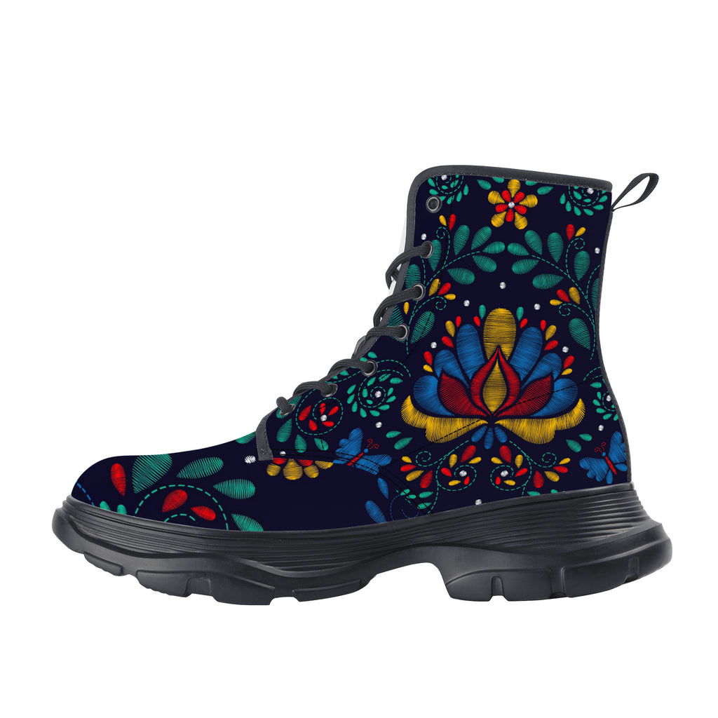 • Lightweight rubber, eco-friendly PU upper and EVA outsole for chunky boots.